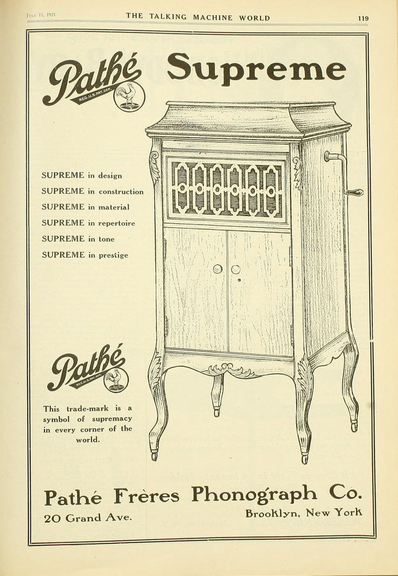 The Pathé Supreme model, The Talking Machine World, July 15, 1921.