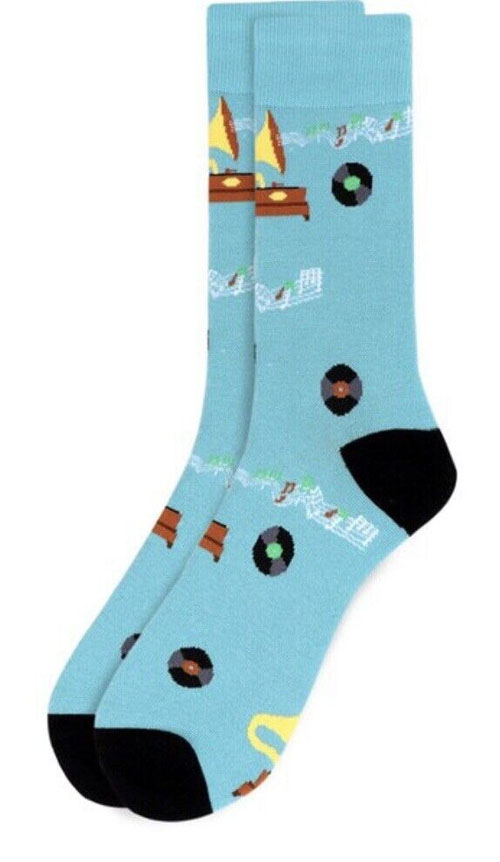 Men's Blue Phonograph and Records Motif Silk Neck Tie