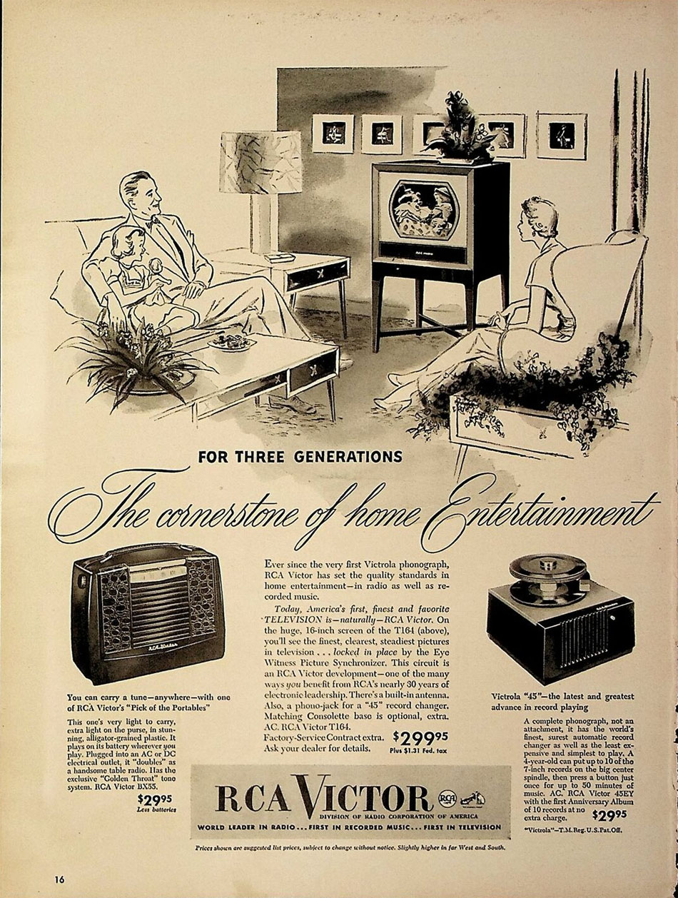 RCA Victor "The cornerstone of home entertainment for three generations," 1959