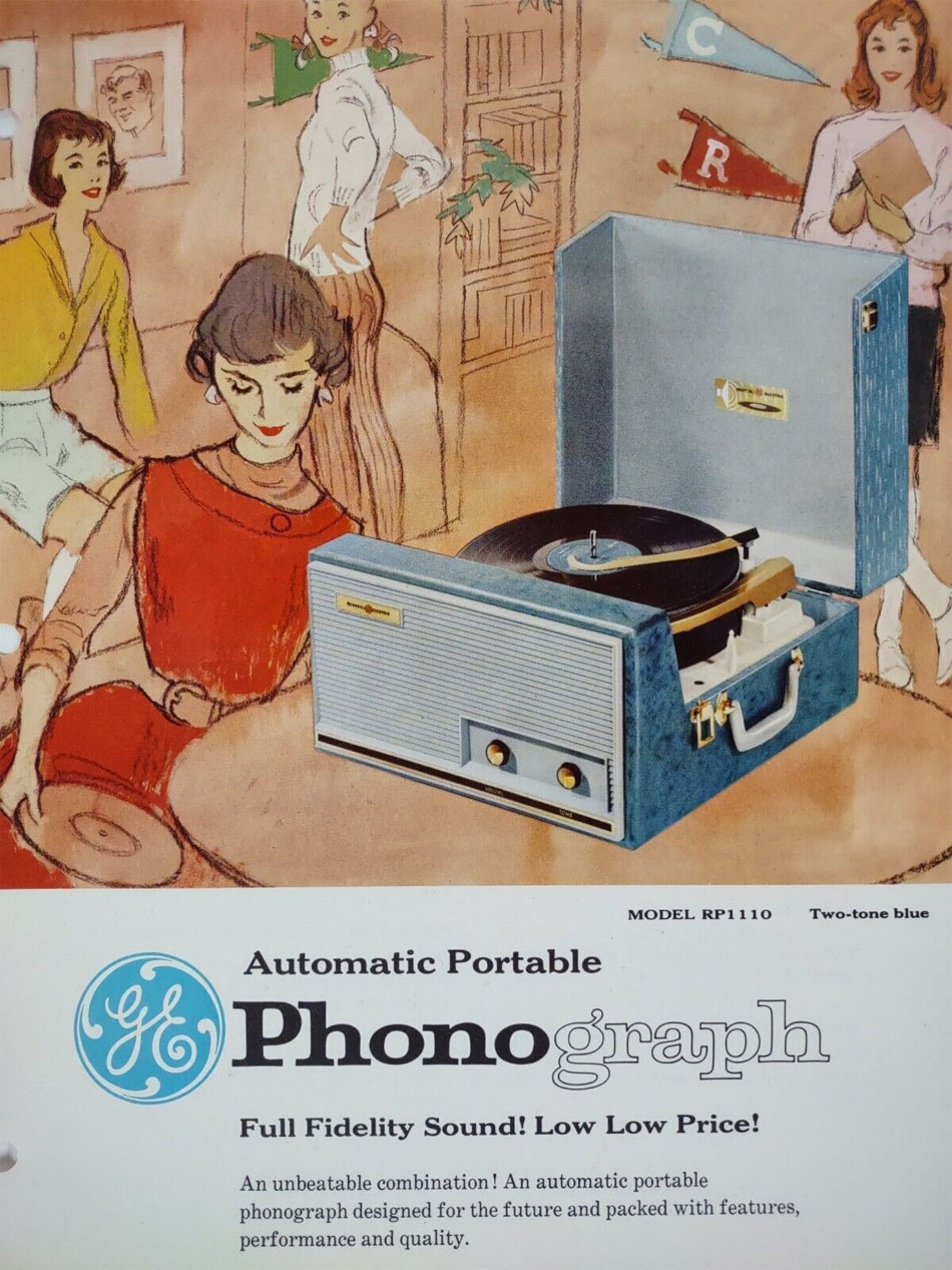 Brochure ad, General Electric Portable Phonograph Model RP1110, circa 1960