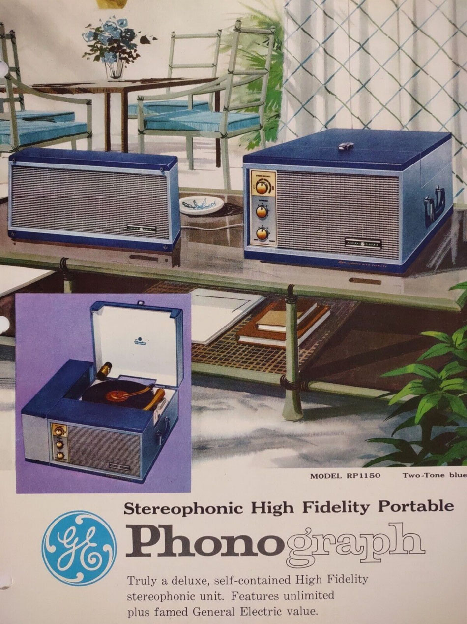 Brochure ad, General Electric Portable Phonograph Model RP1150, circa 1960