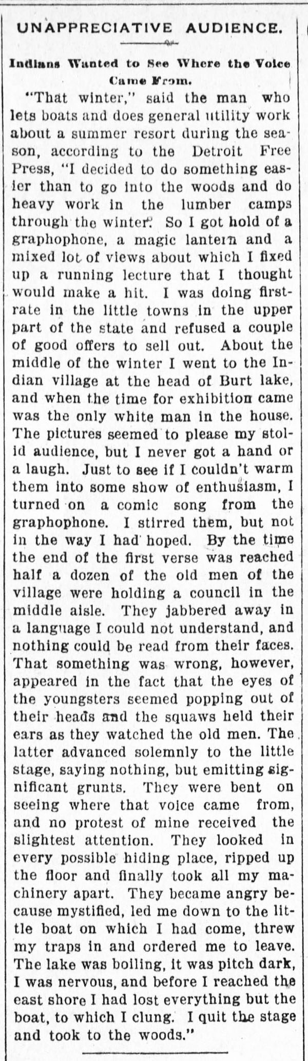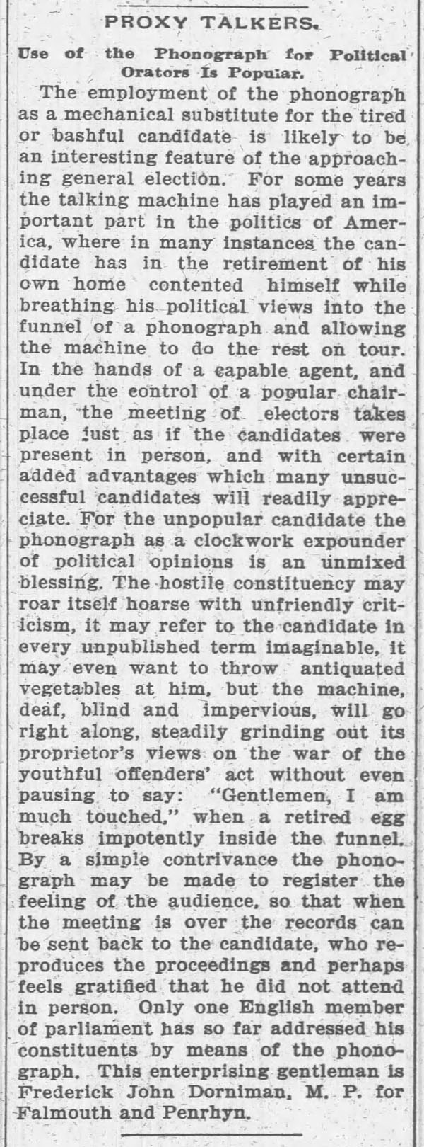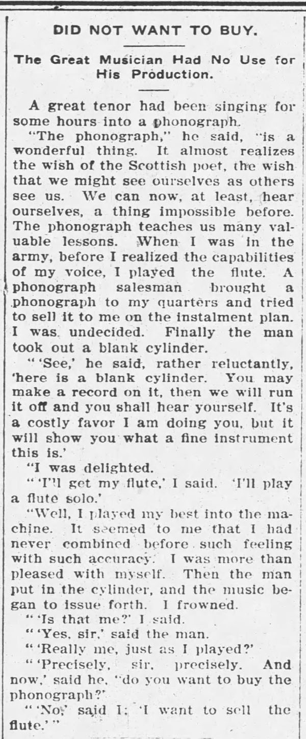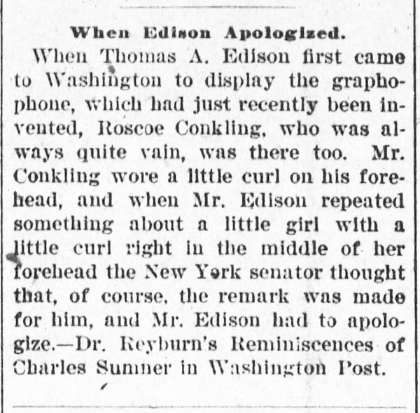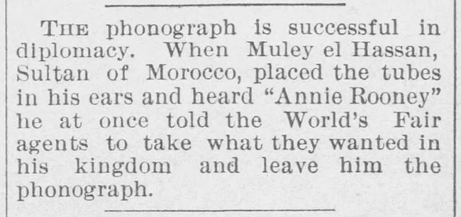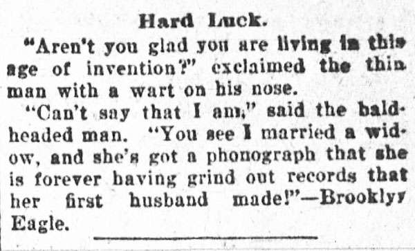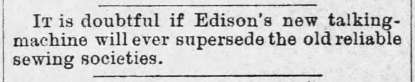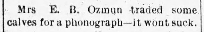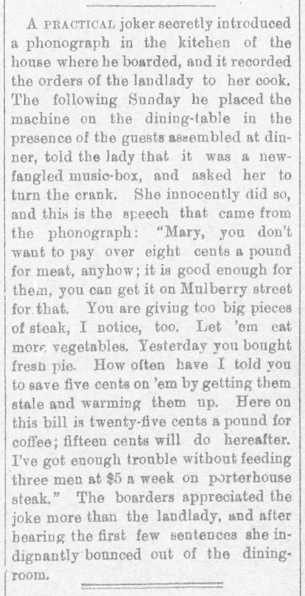 “A practical joker secretly introduced a phonograph in the kitchen…” The Rushville Standard, May 8, 1891
