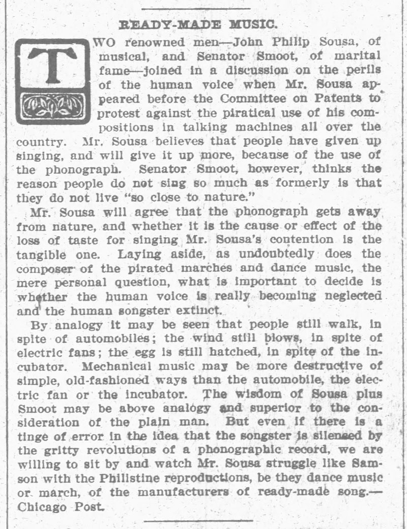 “Senior Class Reception welcomed by the phonograph,” The Rushville Recorder, May 18, 1906