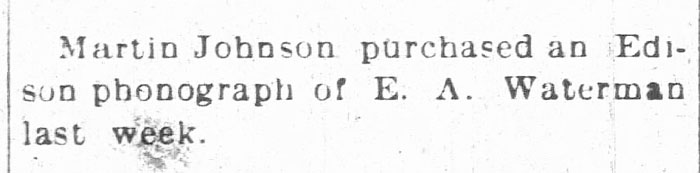 Martin Johnson purchased a Phonograph. The Gordon Journal, March 22, 1907