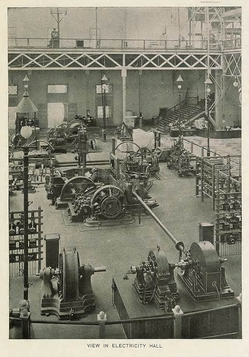 Exhibits inside the Electricity Building. (Image from Bancroft, Hubert Howe The Book of the Fair. The Bancroft Company, 1893.)