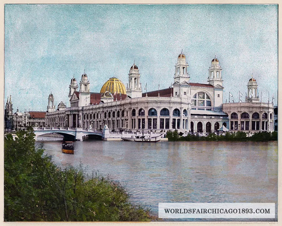 The Electricity Building - "Its architecture speaks the romance of the Italian Renaissance; its contents, the magic of modern electrical science." (Source: Picturesque World's Fair. An Elaborate Collection of Colored Views worldsfairchicago1893.com)