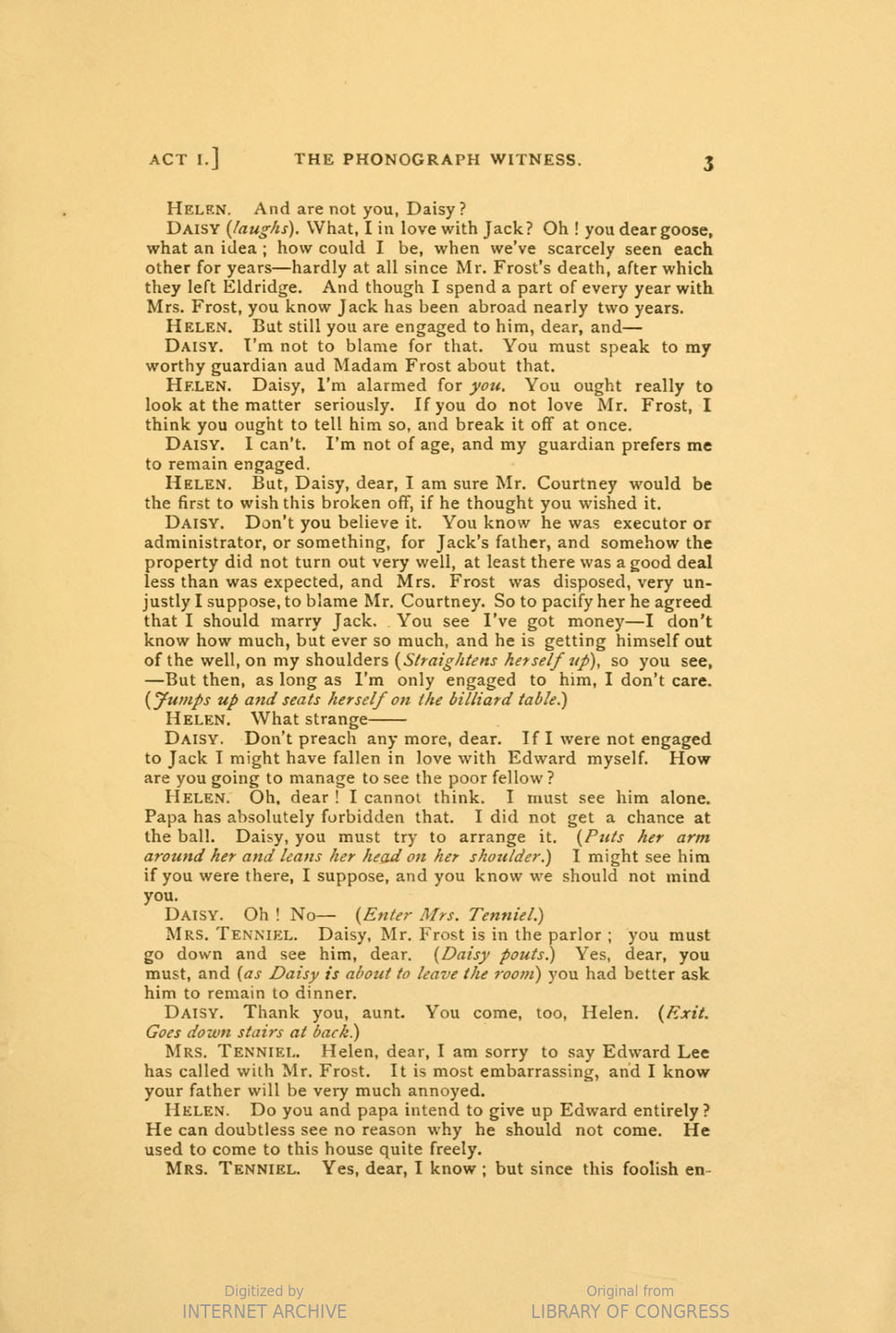 The play can be read on-line courtesy of the Internet Archive, HathiTrust.org and the Library of Congress. Excerpts that appear on this page are extracted from the Library of Congress's copy digitized by Internet Archive.