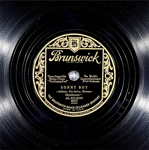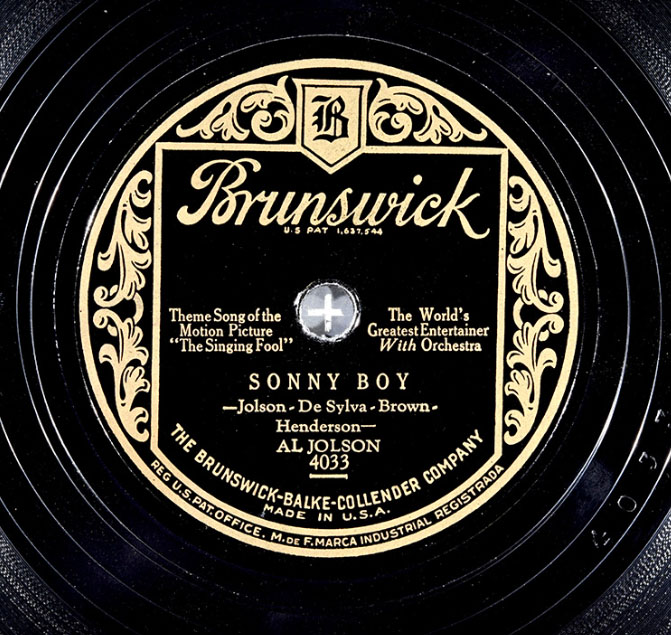 Sonny Boy by Al Jolson, The Brunswick-Balke-Collender Company Record No. 4033 Recorded on August 20, 1928 (Courtesy i78s.org and David Giovannoni)