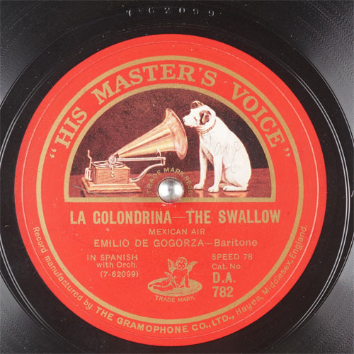 to 1926 HMV Record "La Golondrina" sung by bartione Emilio