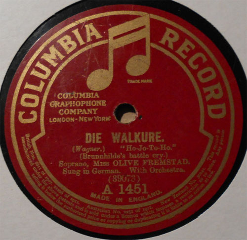 Sung by Olive Fremstad, Columbia Record No. A-1451 Recorded October