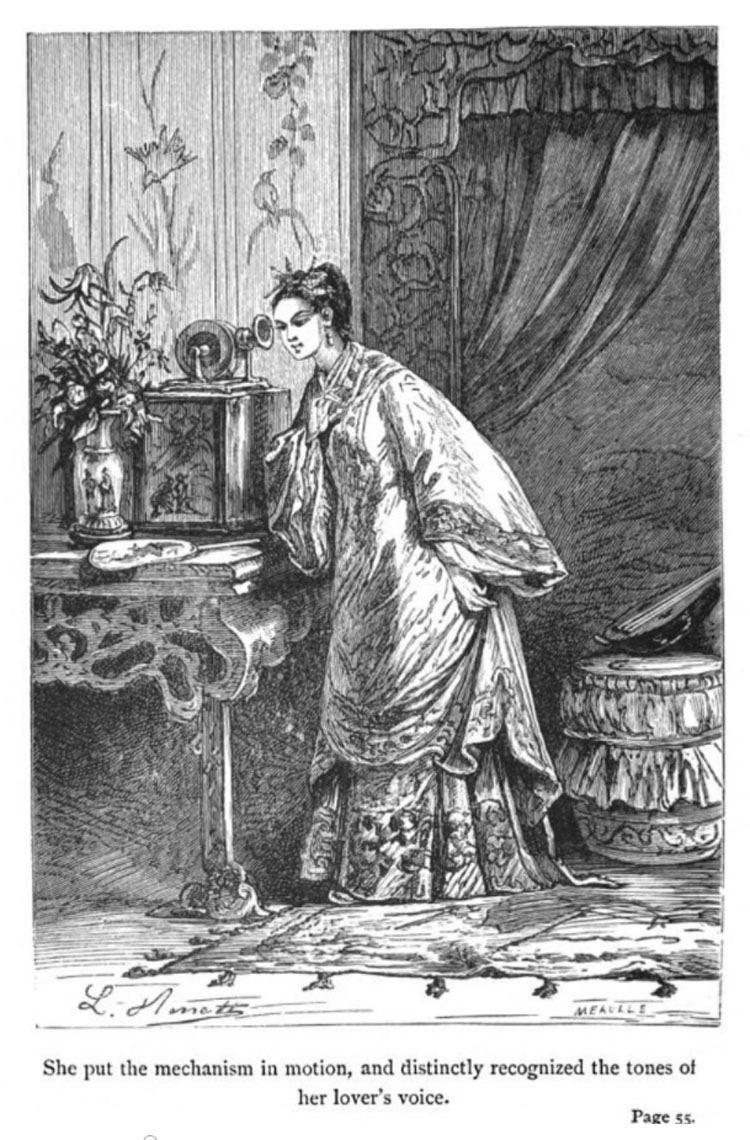 In addition to Kin-Fo's phonograph..."there was hardly a modern scientific applicance that had not been adopted in his house; he had a telephone that placed him in communication with every department of the yament; he had electric bells fitted to every chamber;" (ibid, p.39)