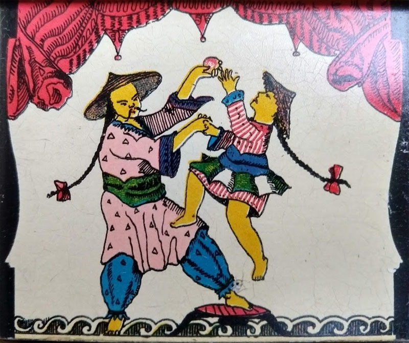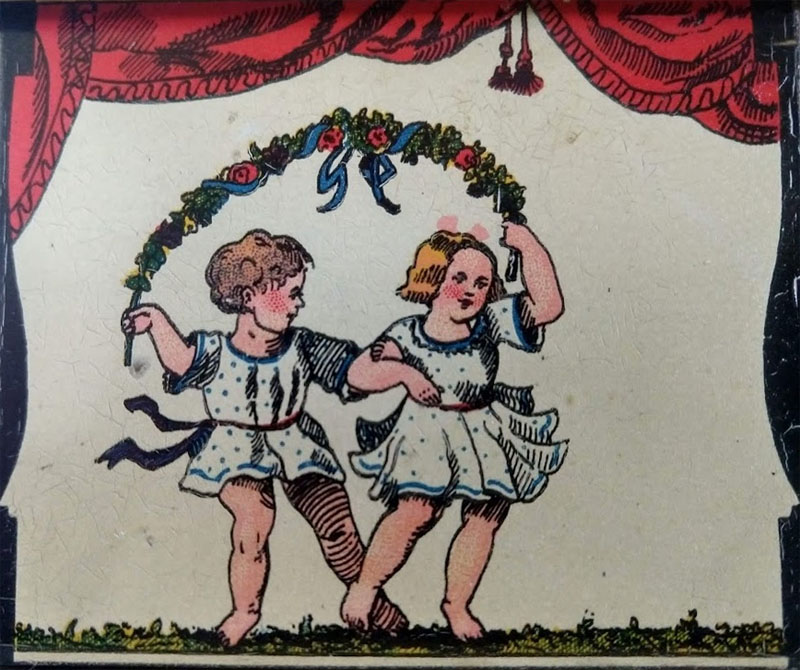 The Bingophone II was a children's 10" diameter gramophone with colorful lithographs on its octogon panels as seen below.
