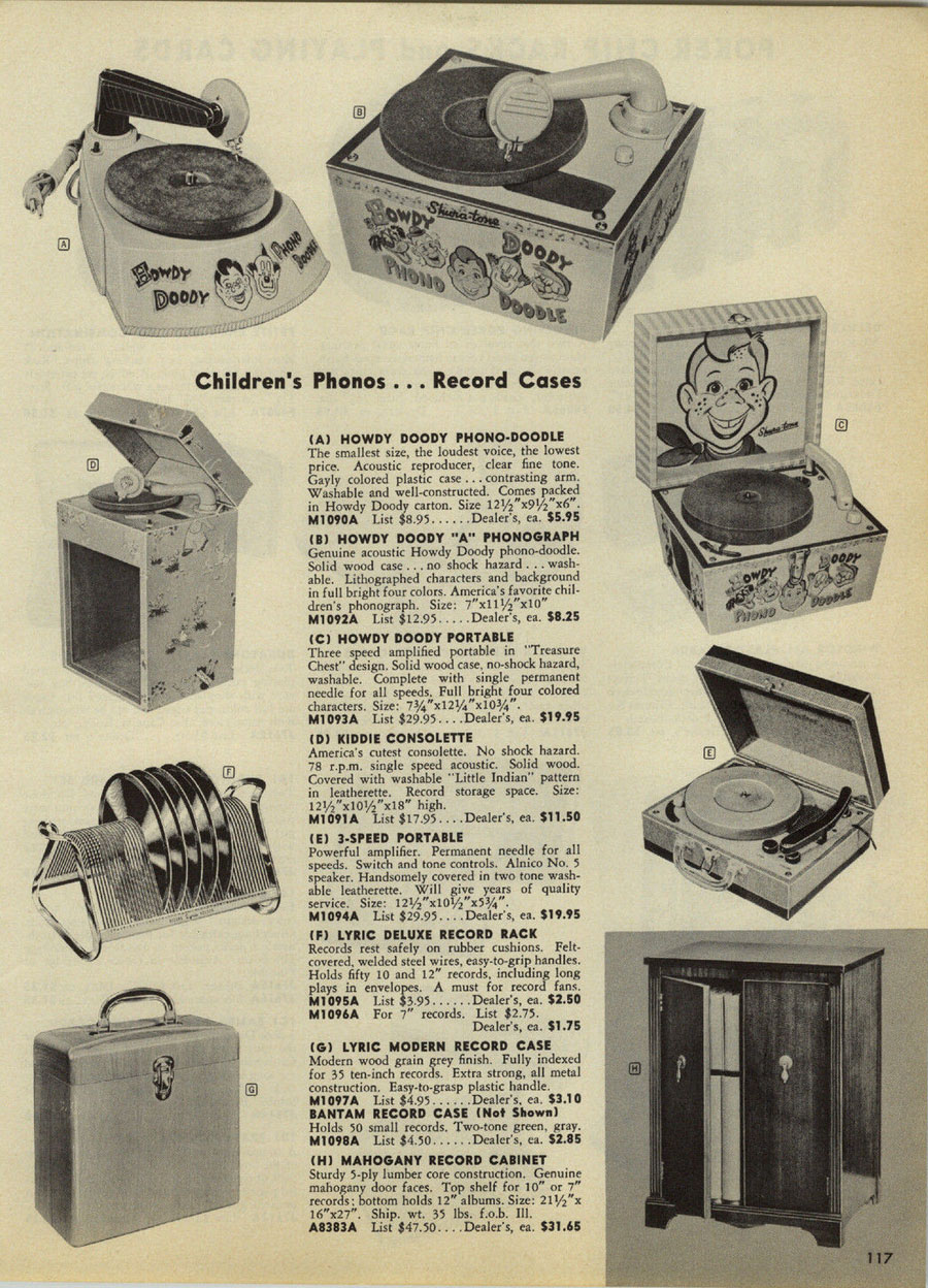 1955 Catalog page showing the three Howdy Doody Phonograph Models.