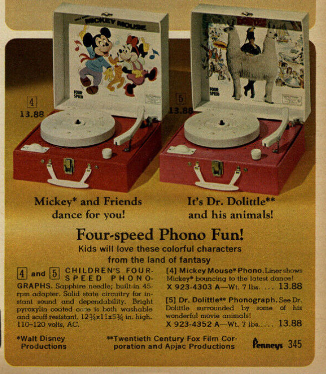 Penny's Four-Speed Phono Fun! - Mickey and Friends and Dr. Dolittle and his animals! 1968.