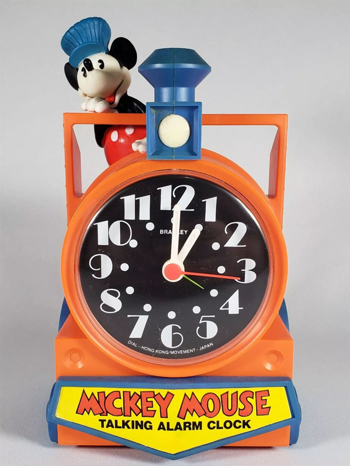 Mickey Mouse Talking Alarm Clock - Choo Choo, Bradley, Model 2082NBUU, c. 1980