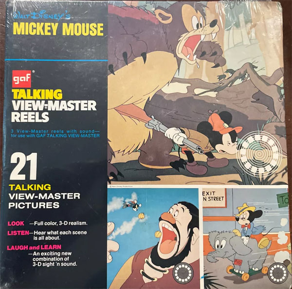 Walt Disney's Mickey Mouse Talking View-Master Stereo Views with sound, gaf,1973.