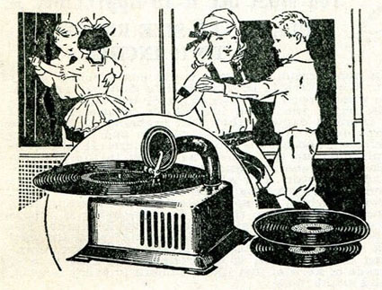 Advertised as providing "Excellent Evening's Entertainment" young children are illustrated dancing to it. No children's records are mentioned in the ad, however, "best performances of the World's Greatest Artists" and the "World's Best Singers, Band Selections, etc..." are highlighted entertainers.