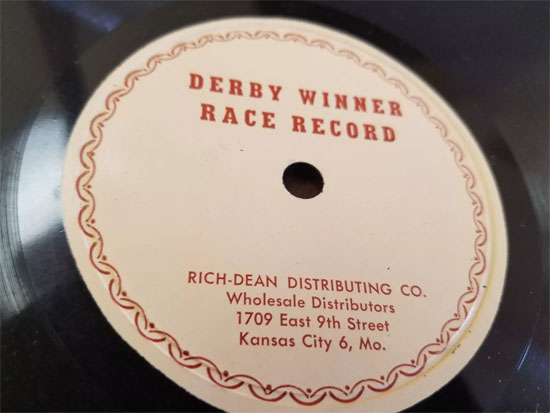 Derby Winner Race Record Label: Rich-Dean Distributing Co., Kansas City 6, Mo., Shellac 12", 78 RPM Record, 1945. (Information and images courtesy of Discogs and bigbillkorst2 (Ebay).