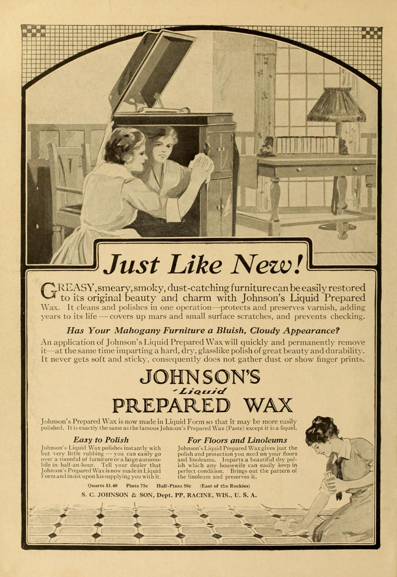 Johnson's Prepared Wax - The Ladies' Home Journal, May 1922, p. 109 (Courtesy University of Michigan)