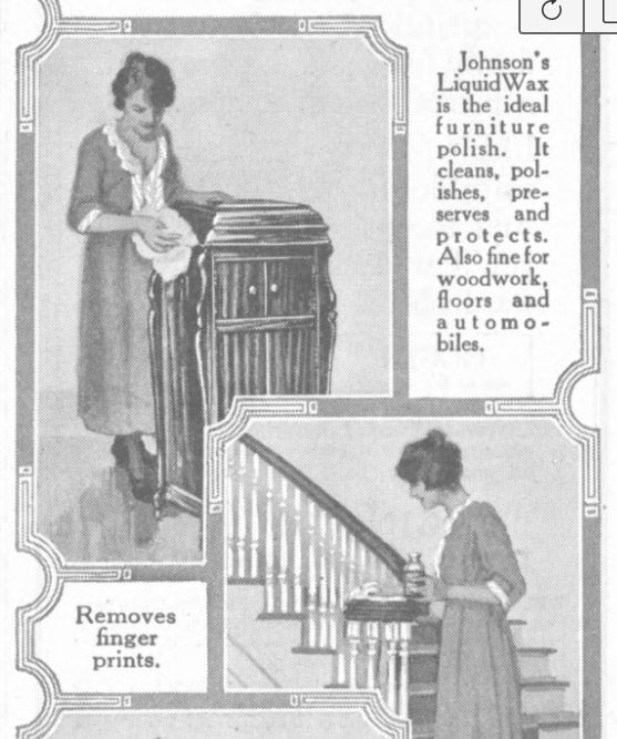 Johnson's Prepared Wax - The Ladies' Home Journal, April 1922, p. 129 (Courtesy University of Michigan) (See full ad)