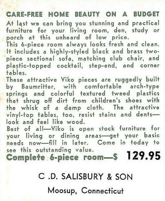 Circa 1957 postcard advertising 6-piece furniture set