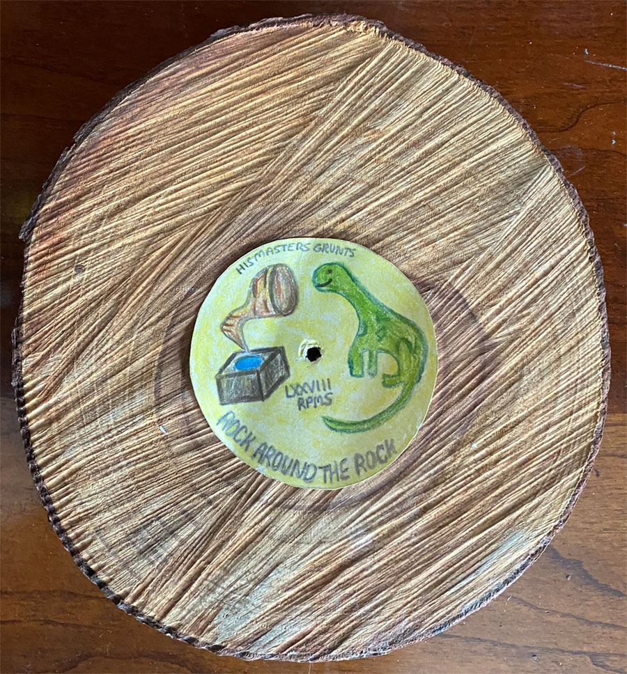(His Master Grunts Record is 7" D x 1" H slice of wood cut from tree trunk).