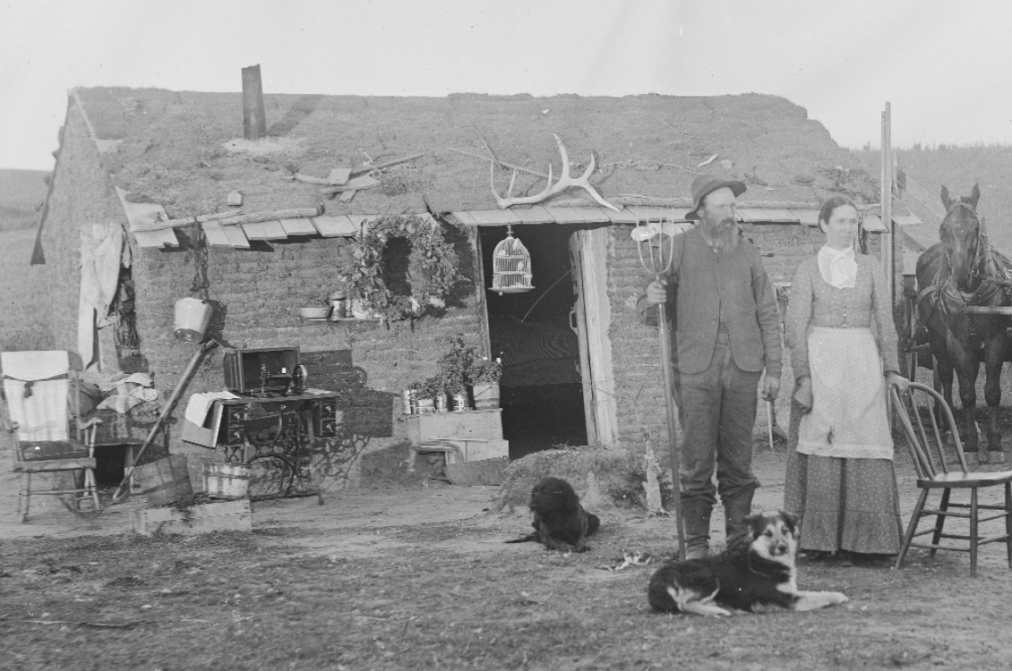 The John Curry Homestead with sewing machine John Curry and wife's sod house near West Union, Custer County, Nebraska, 1886 by Solomon D. Butcher. Known in Nebraska as "American Gothic (Courtesy History Nebraska) |