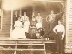 Family portrait on porch with cylinder phonograph and Edison records, ca. 1910 (PM-2285). |