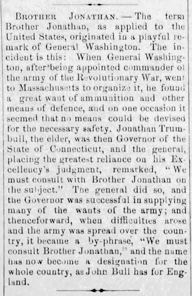 The article then explained the origin of Brother Jonathan's name.