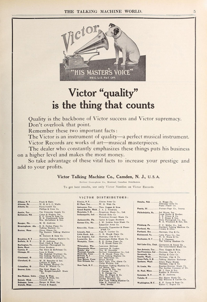 Victor Quality - The Talking Machine World, December 15, 1910.