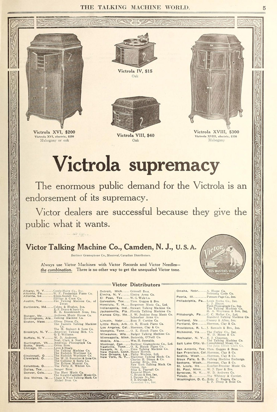 the best homes the country over." Victor Supremacy,