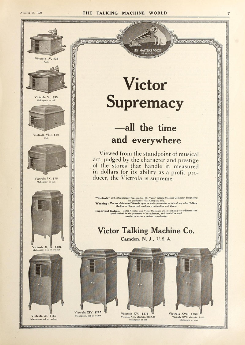 Victor's Supremacy over mortality. A 1918 ad stated "Practically
