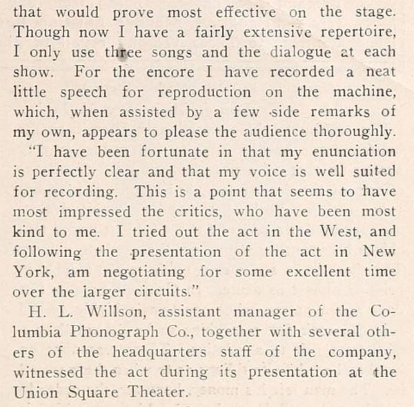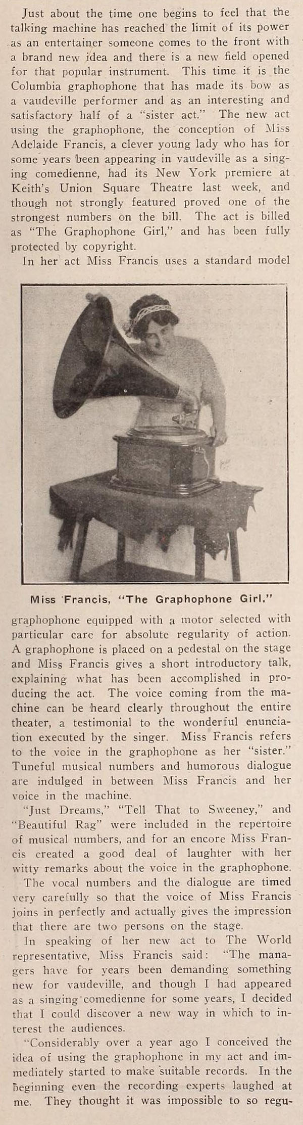 The act was billed as "The Graphophone Girl."